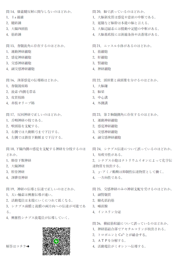 医療系の学生(看護師、理学療法士、作業療法士、鍼灸師、あん摩マッサージ指圧師、柔道整復師など)に解いていただけたら幸いです!