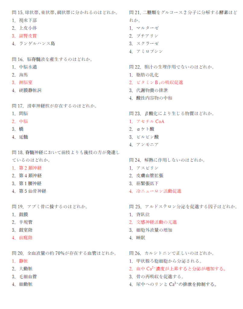 国家試験対策問題!!(2月7日) 2026 1/16 国家試験対策 2024年1月18日2026年1月16日 目次4択問題 3年生問題-4ダウンロード 4択問題 解答 問21は1番が答えになります。 国家試験対策 よかったらシェアしてね! URLをコピーしました! URLをコピーしました! コメント コメントする コメントをキャンセルコメント ※ 名前 ※ メール ※ サイト 次回のコメントで使用するためブラウザーに自分の名前、メールアドレス、サイトを保存する。 Δ