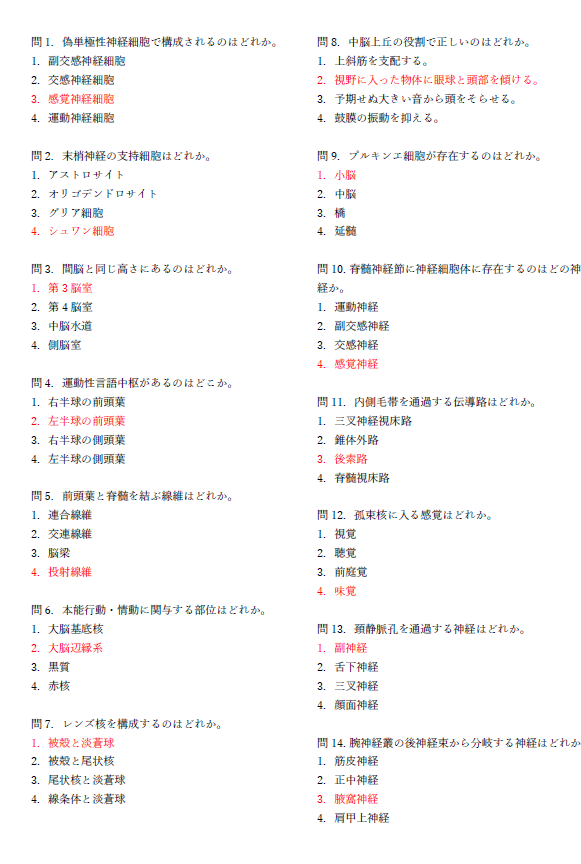 こんにちは!神経系の解剖学の国家試験対策問題を作成しました。